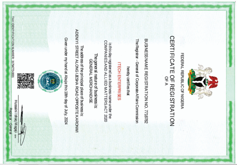- iTech Enterprise is officially registered with the Corporate Affairs Commission (CAC) and SMEDAN β ensuring all services comply with Nigerian business regulations.